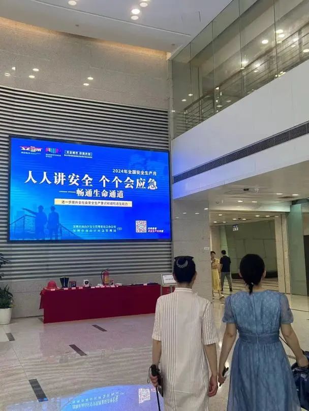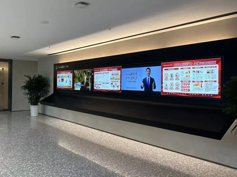 宣傳電子屏處,循環(huán)播放“安全責(zé)任制”、“暢通安全通道”、“強(qiáng)化安全防范措施”等宣傳海報(bào)和視頻